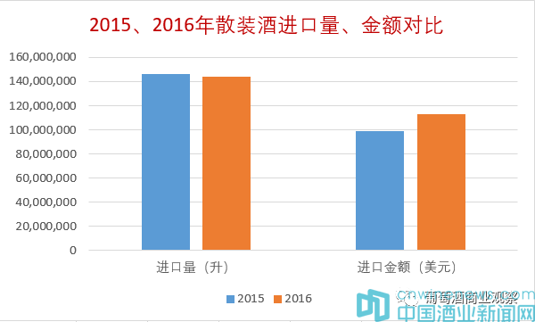 瓶裝酒進(jìn)口量額雙雙上漲,增長率較2015年收窄