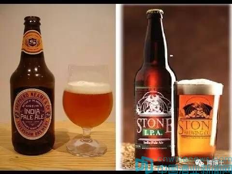 美式IPA:用料更加奔放,酒精度會比英式IPA偏高1-2度;酒花用量大,苦度也要偏高10左右,酒花香味方面明顯較強;顏色相近,但一般偏淡;酵母發酵純凈,除了酒精、麥芽和酒花之外的味道很少。