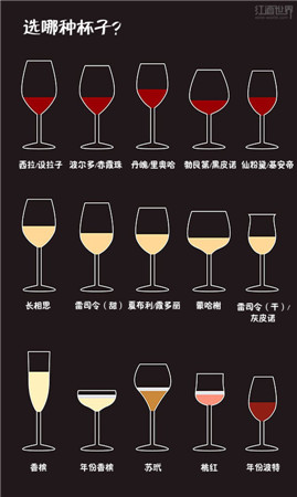 不同類型的葡萄酒適合用不同類型的酒杯來飲用。