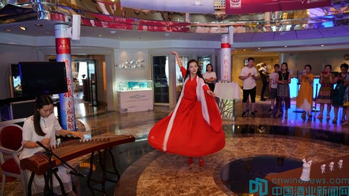 8月19日下午16點,以“熱情五糧,共迎賓客”為主題的嘉賓歡迎儀式在甲板舉行。來自多個國家的歌舞演員與嘉賓共舞,主賓盡歡。