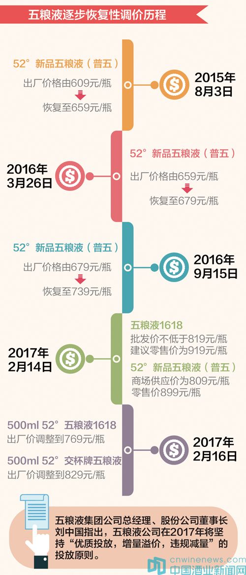 2016年年末和2017年新春伊始,備受關(guān)注的“中國酒業(yè)大王”五糧液頻頻放出“大招”:一方面再度恢復(fù)性提價(jià),讓“普五”順勢實(shí)現(xiàn)價(jià)值回歸;另一方面出臺(tái)“優(yōu)質(zhì)投放,增量溢價(jià),違規(guī)減量”的新政,強(qiáng)烈釋放理順與革新渠道的信號(hào)。