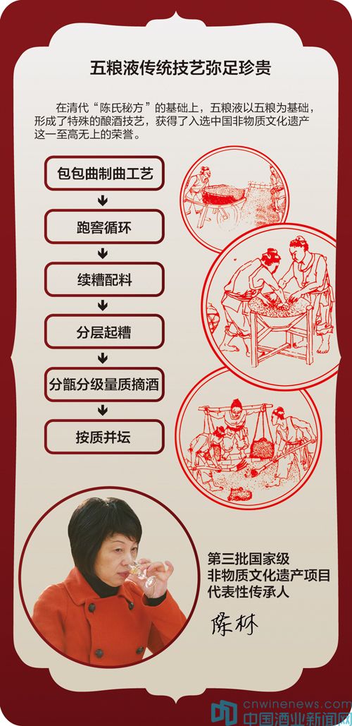 國家文化部“第三批國家級非物質文化遺產項目代表性傳承人”名錄之中,就將“蒸餾酒傳統釀造技藝(五糧液酒傳統釀造技藝)陳林”收錄其中。