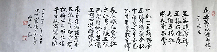詩書寫者:梁文,中國工藝美術協會會員,中國書畫研究院院士,襄陽書畫藝術院、臥龍書畫院、光武書畫院院士。