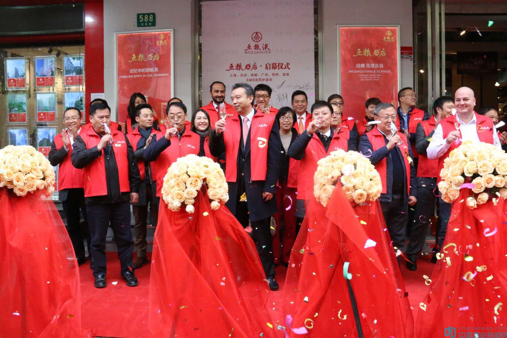 中國酒業協會副理事長劉秀華,中國酒業協會戰略顧問、上海酒類流通行業協會名譽會長盧榮華,宜賓市人民政府副市長廖文彬,宜賓市人民政府副秘書長朱志剛,五糧液集團有限公司黨委書記、董事長李曙光,集團公司總經理、股份公司董事長劉中國,股份公司副總經理朱忠玉,TWE、帝亞吉歐、保樂力加、人頭馬等世界頂級名酒企業以及阿里云、1919、酒仙網等企業代表共同出席了上海“五糧e店”測試啟動儀式。