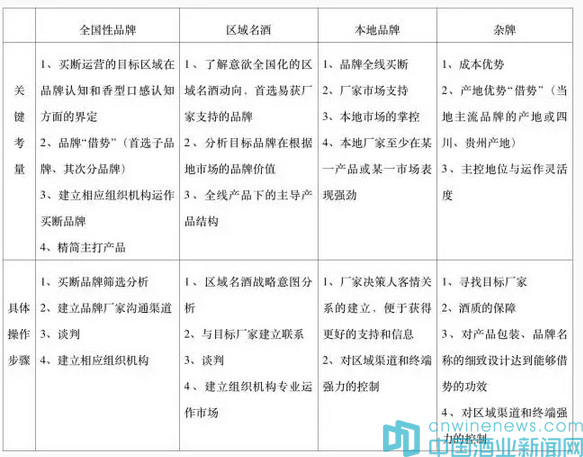 在四大模式中,全國性品牌與區域名酒具有很強的品牌力,這種品牌力可以轉化為消費者拉力,繼而轉化為渠道驅動力,因此這兩種品牌買斷運營對資金的要求高于對渠道掌控力的要求。本地品牌與雜牌在成本和靈活度上的優勢遠遠大于其品牌拉力,更適合小區域深耕細作對渠道有較強掌控力的經銷商。
