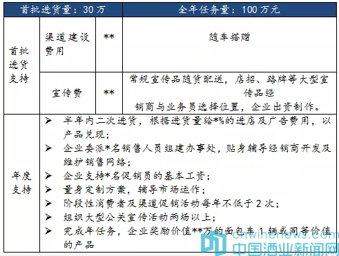 原則一:單一產品縣區獨家經銷商,但核心市場也可以不設置經銷商由廠家直接運作。原則二:渠道匹配原則,新品招商要根據產品檔位選擇合適經銷商,渠道匹配性是關鍵點,原有經銷商運作新品同樣考慮渠道的匹配性。原則三:坎級支持,新品經銷商以首批打款額度給予分坎級支持,支持費用用于渠道或市場建設,具體支持力度及政策方向可以參考下表。