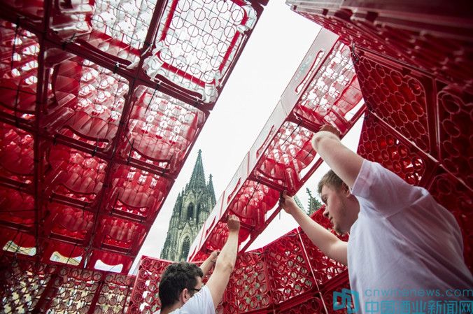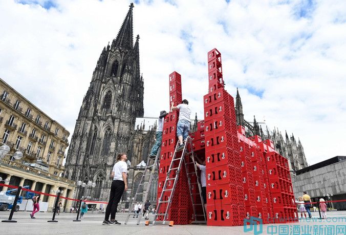 6月25日,在德國科隆,一些建筑系的學(xué)生用啤酒箱搭建科隆大教堂的模型,以此慶祝1842年科隆大教堂重新奠基動(dòng)工建設(shè)。