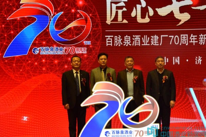 領(lǐng)導致辭以后,百脈泉酒業(yè)70周年慶典活動正式啟動,薛劍銳、郭友武、姜祖模及李成新共同為70周年揭幕。