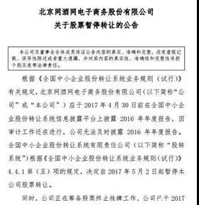 4月24日,網(wǎng)酒網(wǎng)主動(dòng)申請(qǐng)終止掛牌,成為第一家退出新三板的酒類(lèi)電商。