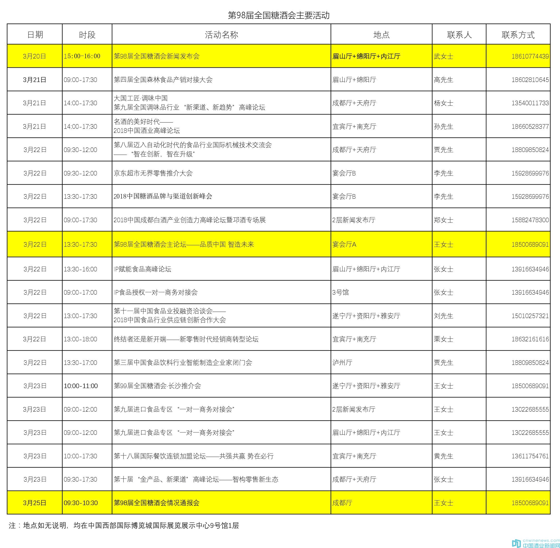 第98屆全國糖酒會主要活動