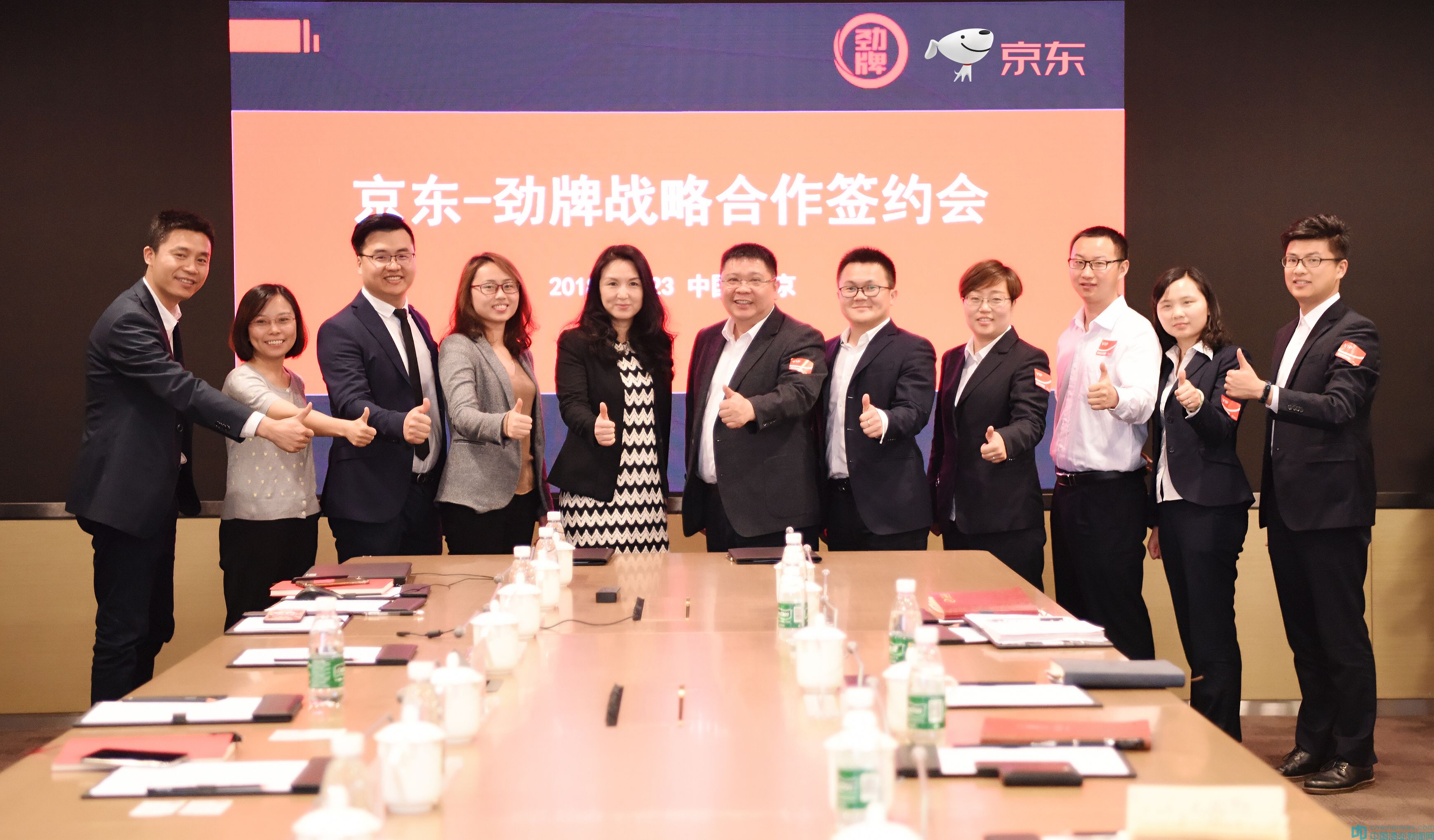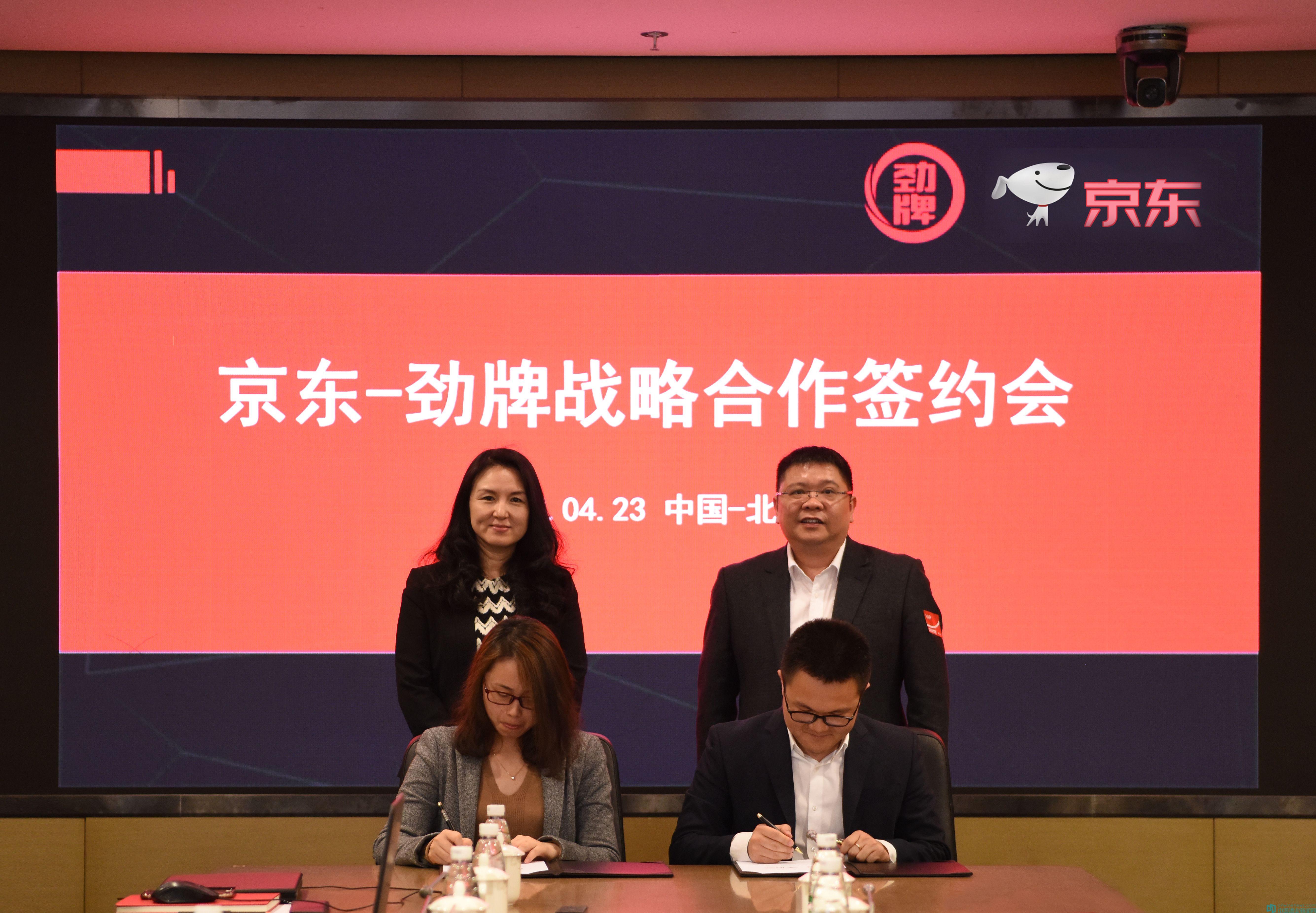 4月23日,勁牌有限公司與京東集團(tuán)在北京正式簽訂戰(zhàn)略合作協(xié)議。勁牌公司副總裁王楠波、京東集團(tuán)副總裁馮軼、勁牌公司互聯(lián)網(wǎng)事業(yè)部總經(jīng)理王軍、京東集團(tuán)大快消事業(yè)群總經(jīng)理吳雙喜等雙方領(lǐng)導(dǎo)一同參加簽約儀式。