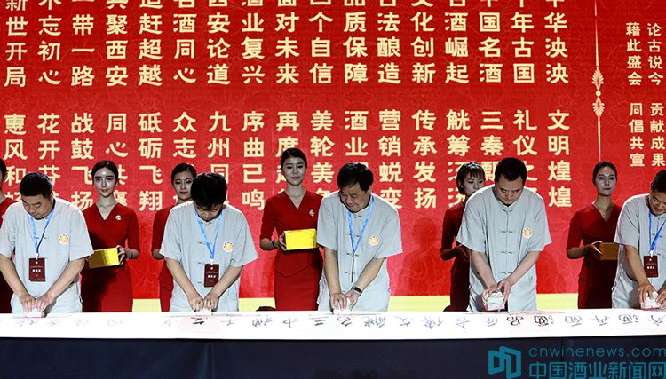 經過全體與會人員的共同努力,大會形成了“以誠為本,創新為魂,質量主體、報國利民”的《中國名酒西安宣言》。與會名酒企業領導人共同為《宣言》簽章,并表示要致敬歷史、致敬匠心,釀造美酒,共創中國白酒新時代。