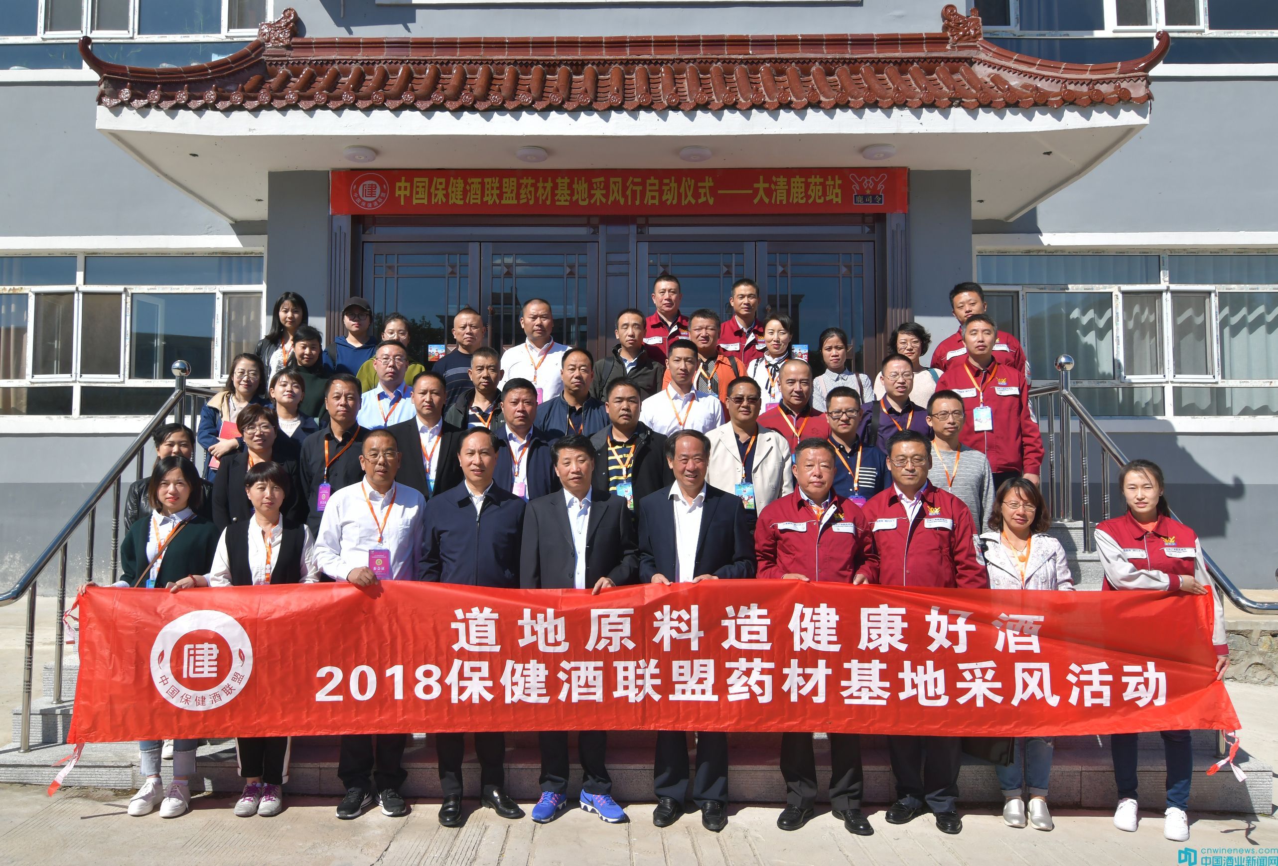 藥材好,保健酒的品質才會好。金秋9月,恰逢眾多道地藥材采收的金秋時節,9月26日,中國酒業協會常務副理事長王琦,中國保健酒聯盟理事長、勁牌有限公司董事長吳少勛,中國保健酒聯盟輪值理事長、吉林大清鹿苑保健科技有限公司董事長曲風采,中國保健酒聯盟秘書長、勁牌有限公司總裁助理吳剛,會同吉林大清鹿苑保健科技有限公司、勁牌有限公司、貴州茅臺健康產業有限公司、五糧液集團保健酒有限公司、山西杏花村竹葉青酒營銷有限責任公司、瀘州老窖養生酒業有限公司、寧夏紅枸杞產業有限公司、廣西古嶺龍投資集團有限公司、浙江致中和實業有限公司、南通頤生酒業有限公司、廣東順德酒廠有限公司、廣東石灣酒廠集團有限公司、河南省養生殿酒業有限公司等保健酒聯盟的14家會員企業代表和來自全國主流媒體的記者們齊聚吉林四平大清鹿苑保健科技有限公司,舉行主題為“道地原料造健康好酒”的2018中國保健酒聯盟藥材基地采風活動啟動儀式。