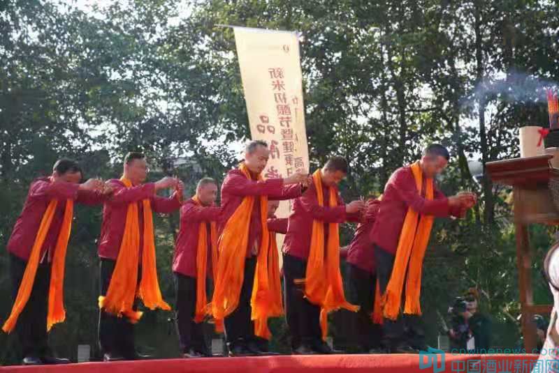 投釀現(xiàn)場,眾嘉賓在主禮副禮的帶領(lǐng)下,共同投下代表著豐收與祝福的新米,共同開啟品斛堂酒業(yè)新的釀造周期。