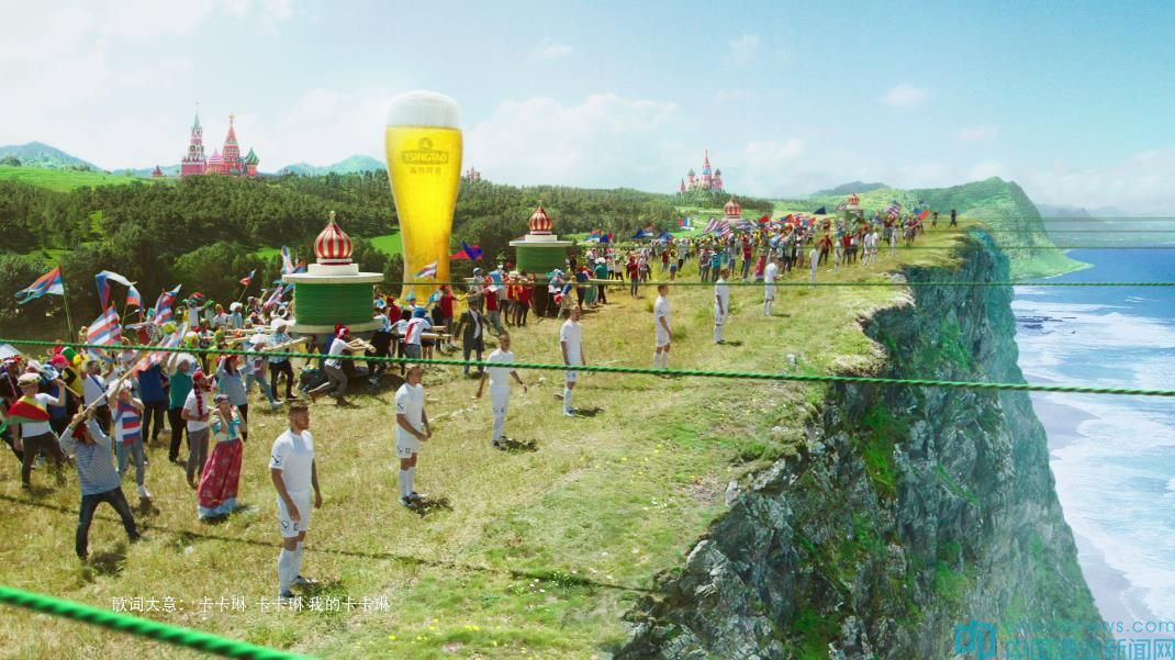 在這部“史詩級大片”中,約三億年前,地球原本是統一的巨大陸地,后來大陸漂移分成七大洲,人類自此各散東西,后來人類約定,每四年相聚一次,在這一天喝啤酒踢足球。時光穿梭,2018年俄羅斯球迷開始了一個偉大的想法,俄羅斯足球健將向全世界踢出足球,通過拔河這種夸張的表達形式,將球迷的熱情表現的淋漓盡致,在眾志成城的努力下,大陸板塊漸漸融合到一起,萬人共同舉杯,只要歡聚就沒有距離。