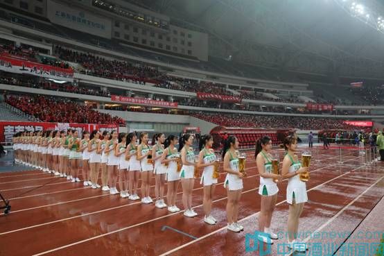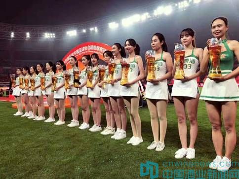 比賽結束之后,首次奪得中超冠軍的上海上港隊,站在頒獎臺中央,享受著數萬名觀眾的吶喊。隨后,青島啤酒啦啦寶貝手捧巨大的冠軍啤酒杯亮相,將全場的狂歡氣氛推到高潮。