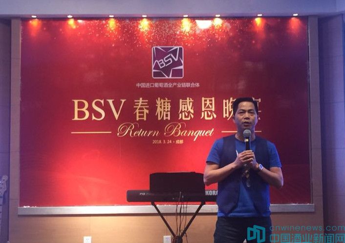 3月24日,伴隨著2018春季全國糖酒會大幕落下,BSV中國進口葡萄酒全產(chǎn)業(yè)鏈聯(lián)合體連續(xù)7天的“大戰(zhàn)春糖”活動完美收官。“感恩相伴,夢想同行”,落幕當晚BSV在成都舉行了隆重的感恩晚會,答謝四川當?shù)夭糠纸?jīng)銷商和參會員工。