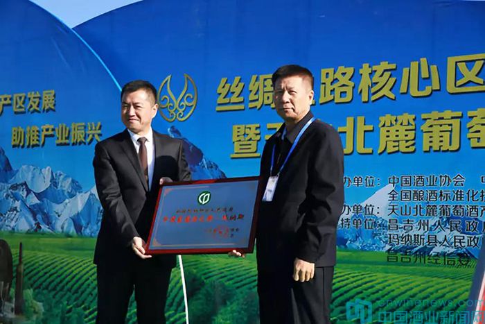 授牌儀式(左:瑪納斯縣縣委副書(shū)記、代縣長(zhǎng)張輝;右:中國(guó)食品協(xié)會(huì)副會(huì)長(zhǎng)沈篪)