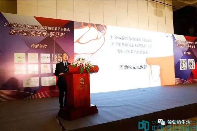 成都國際葡萄酒節創辦人、成都市葡萄酒協會會長周勁松先生代表主辦單位首先致辭,感謝各級政府部門領導、專家學者、行業同仁、新聞媒體和社會各界嘉賓對成都國際葡萄酒節的大力支持和關注。周勁松表示:進入新的十年,成都國際葡萄酒節將辦得更加國際化,將更加注重互動性、參與性和趣味性,并將把果露酒納入葡萄酒節之中,力爭打造成成都市民一年一度的葡萄酒和果露酒的嘉年華活動。