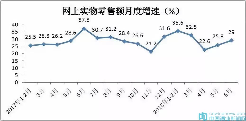 今年1-6月份網(wǎng)上實(shí)物商品零售額實(shí)現(xiàn)31277億元,同比增長29.8%,比上年同期加快1.2個(gè)百分點(diǎn),對(duì)社消零總額增長的貢獻(xiàn)率為46.4%,同比提高13.9個(gè)百分點(diǎn),占社消零售總額的17.4%,比上年同期提高3.6個(gè)百分點(diǎn)。