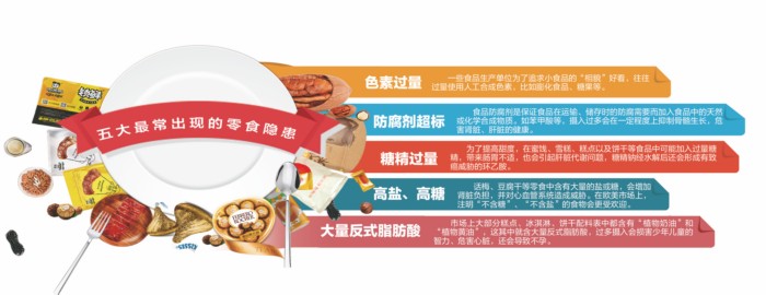 通過對抽查數(shù)據(jù)的統(tǒng)計,行業(yè)專家總結(jié)出五大最常出現(xiàn)的零食隱患,專家并對其危害進行了詳細的分析。