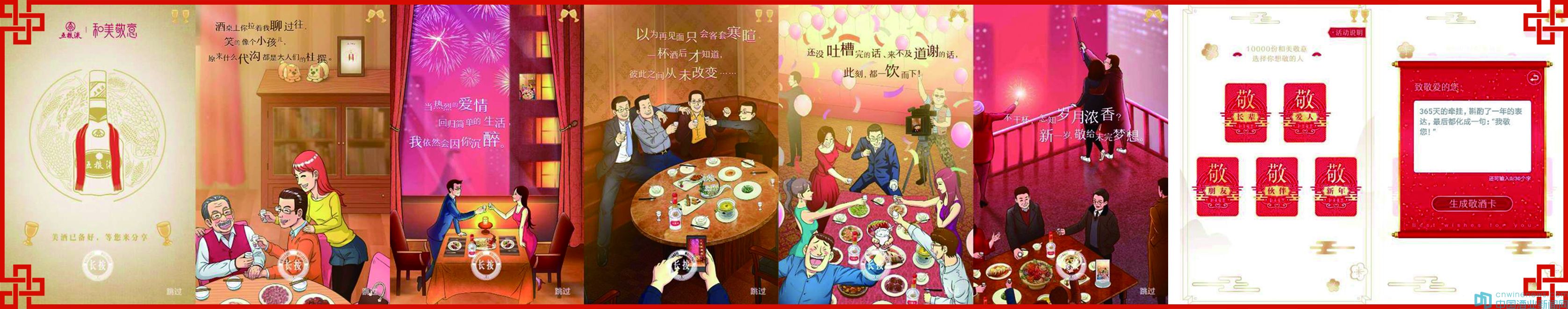 “和美敬意”的活動在很大程度上為消費者創(chuàng)造了多個場景,圍繞春節(jié)主題,敬長輩、敬愛人、敬知己、敬伙伴、敬新年等幾大場景展開,進行演繹,形成了圍繞春節(jié)重要情感的相應輸出。在這一條H5頁面中,營銷上實現(xiàn)了場景化、互動、福利以及裂變,輸出情感的過程里,讓裂變出的祝福海報實現(xiàn)社交職能。當海報成為社交的重要媒介,這份情感共鳴就被彰顯出了更大的效果。
