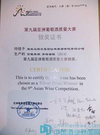 宜賓五糧液仙林果酒有限公司(以下簡稱“仙林果酒公司”)攜拳頭產(chǎn)品百麓果酒·青梅蜜釀、柏漠莊園紅葡萄酒、冰爆參賽,百麓果酒·青梅蜜釀以上乘的品質(zhì)、獨特的酒香和色澤在眾多參賽產(chǎn)品中脫穎而出,喜獲銀獎。這是國內(nèi)外葡萄酒行業(yè)著名專家對百麓果酒酒質(zhì)的肯定,也是對仙林果酒公司產(chǎn)品的肯定。