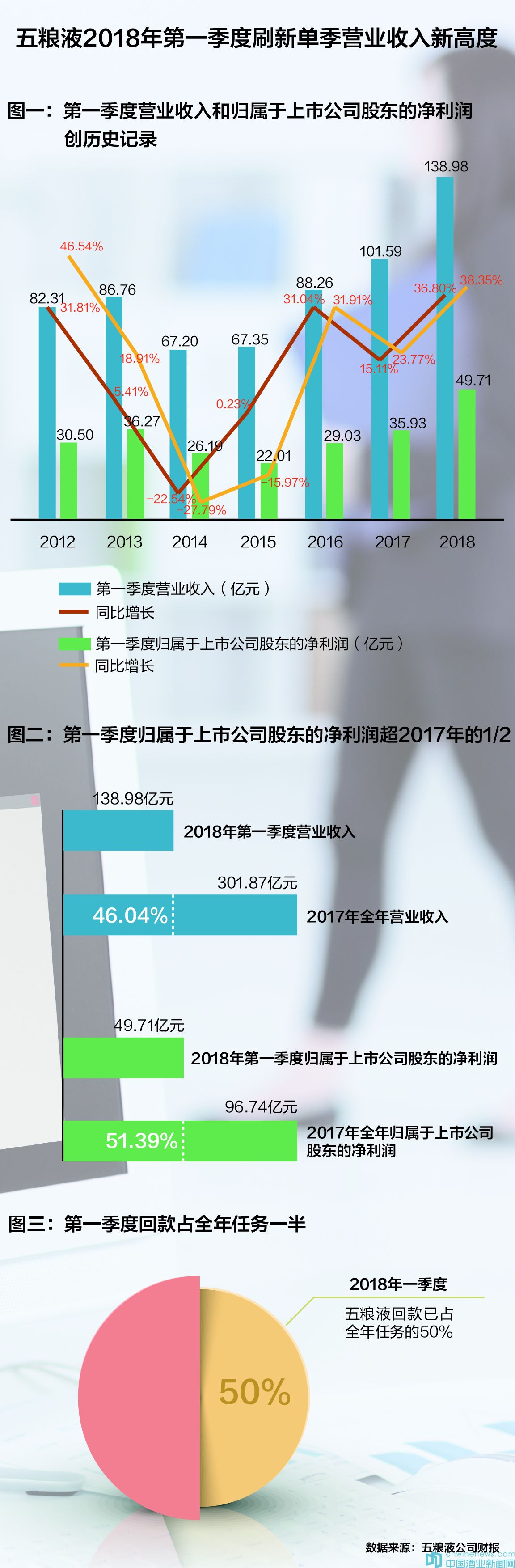 同一時期發布的2017年報顯示,五糧液公司去年實現營業收入301.87億元,歸屬于上市公司股東的凈利潤達到96.74億元。