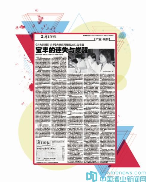 2007年 1月15日,《華夏酒報》刊登了《17大名酒的17年》大型系列報道之寶豐篇《寶豐的迷失與覺醒》一文。