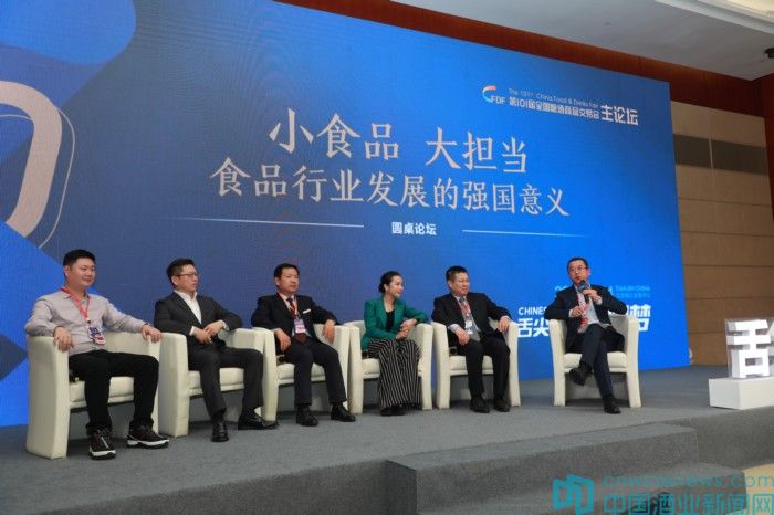 以“小食品,大擔(dān)當(dāng)”為題,在由吳勇主持的圓桌論壇環(huán)節(jié),天津桂發(fā)祥十八街麻花食品股份有限公司董事長吳宏、君度咨詢公司常務(wù)副總裁云肖雨、北京巖博酒類銷售有限公司總經(jīng)理趙緒豪、酒融薈聯(lián)合創(chuàng)始人張揚(yáng)、新潮傳媒集團(tuán)高級副總裁梁春華發(fā)表了各自的精彩觀點(diǎn)。