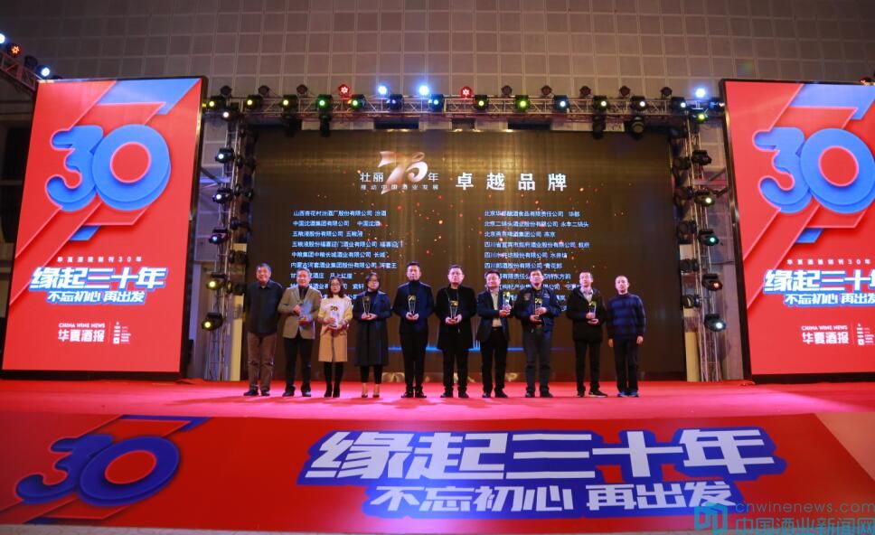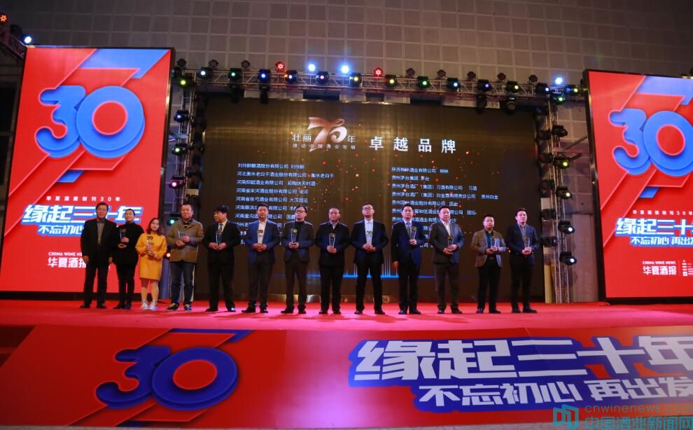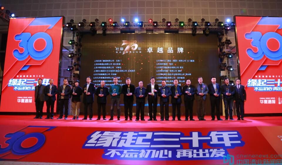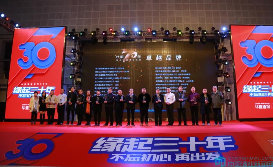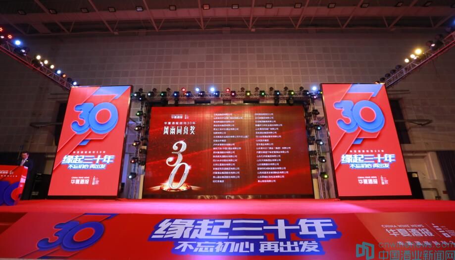 在生日晚宴現(xiàn)場,《華夏酒報》向長期關愛、支持酒報發(fā)展的酒類生產(chǎn)企業(yè)頒發(fā)了《華夏酒報》創(chuàng)刊30周年“風雨同舟獎”、“攜手共進獎”。