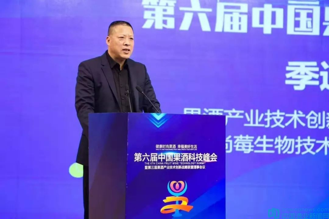 在峰會上,山東黑尚莓生物技術發展有限公司董事長、新任中國果酒產業技術創新戰略聯盟理事長季道遠先生與會致辭,并發表了主旨演講。