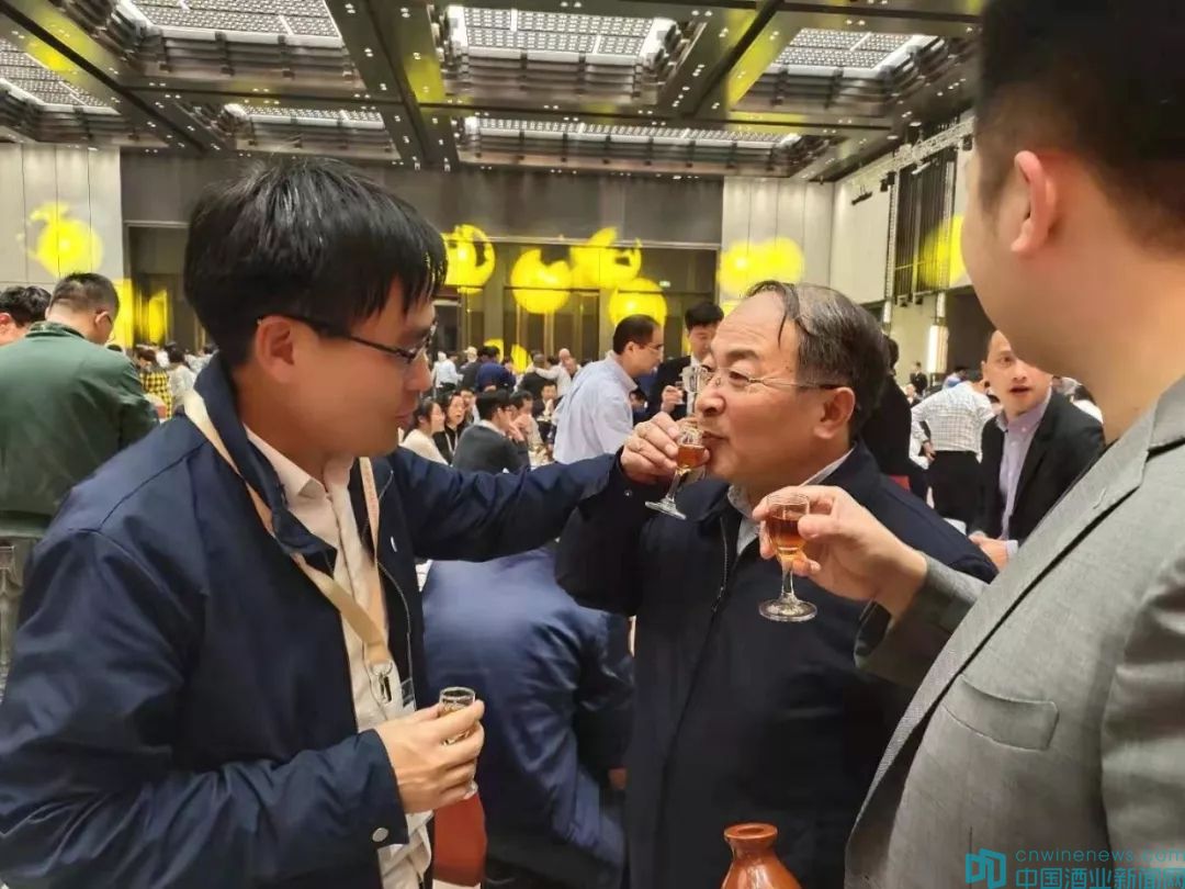 展會期間,中國釀酒大師于秦峰、妙府老酒總經理于淵超與 中國食品發酵工業研究院副院長宋全厚先生交流合影。