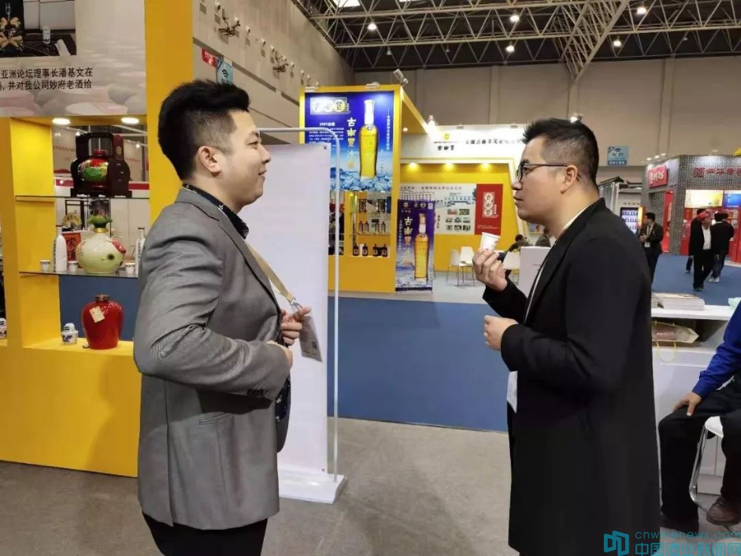國際友人在妙府展位現場舉杯妙府老酒一飲而盡,不時說 “very good”