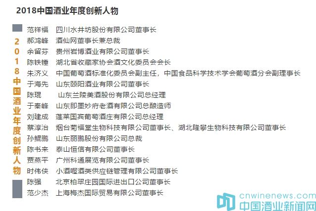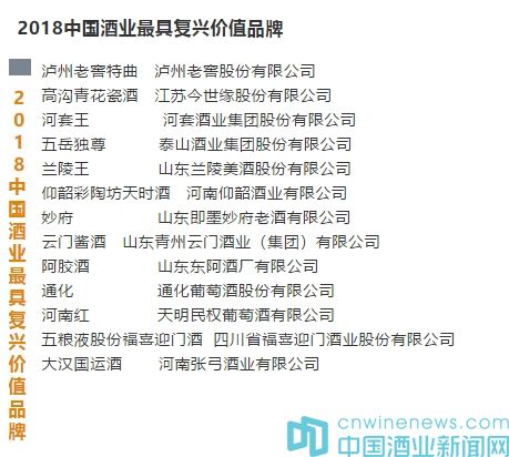 附榜單:2018中國酒業年度品牌(以下排名不分先后)