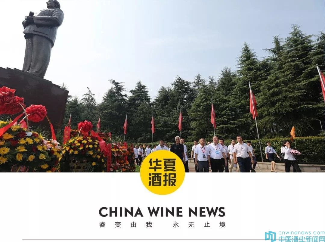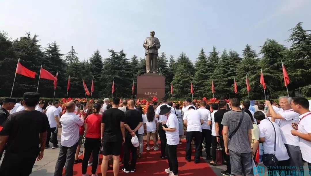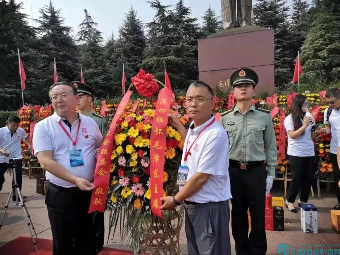 在毛澤東銅像廣場,中國千商大會辦公室主任熊玉亮,中國千商大會組委會常務副主任、華夏酒報、中國酒業新聞網總編輯韓文友一同手持花籃,沿著臺階慢慢走到毛澤東銅像前,緩緩將花籃放下,500余名參會代表緊隨其后。隨后,全體人員向毛澤東銅像深深三鞠躬,來自全國19家特色名酒紛紛獻酒,表達深沉的緬懷之情。