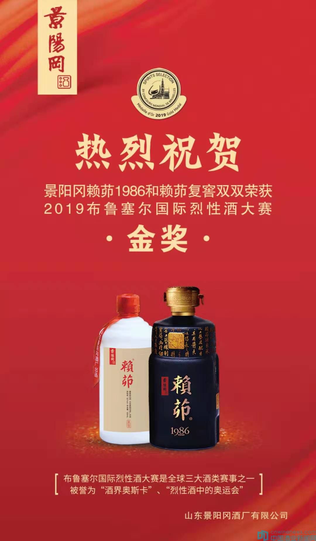 山東景陽岡酒廠有限公司擁有醬香型、濃香型、兼香型、芝麻香型產品的生產能力,企業自1950年建廠以來,兼香型的景陽岡陳釀曾在20世紀80年代創造過“一瓶難求”的銷售業績,濃香型的大單品——景陽岡透瓶于2018年斬獲單品銷售過億的業績,“景陽岡賴茆1986”、“景陽岡賴茆(復窖)”雙雙摘得“2019布魯塞爾國際烈性酒大獎賽”金獎。