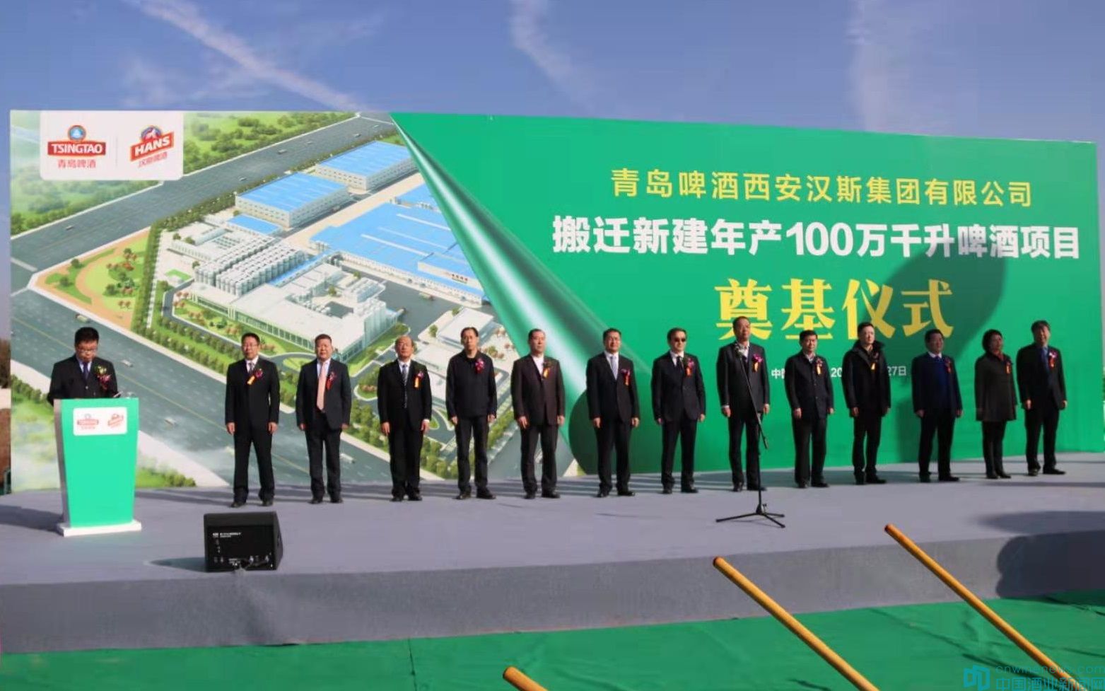 10月27日上午,青島啤酒西安漢斯集團有限公司年產100萬千升啤酒項目奠基儀式在西安臨潼現代工業新城舉行。西安市副市長楊廣亭、青島啤酒公司總裁樊偉、臨潼區委書記王浩、青島啤酒西安漢斯集團公司董事長張建吉,青島啤酒制造總裁助理、西安漢斯集團公司總經理楊振國出席奠基儀式。