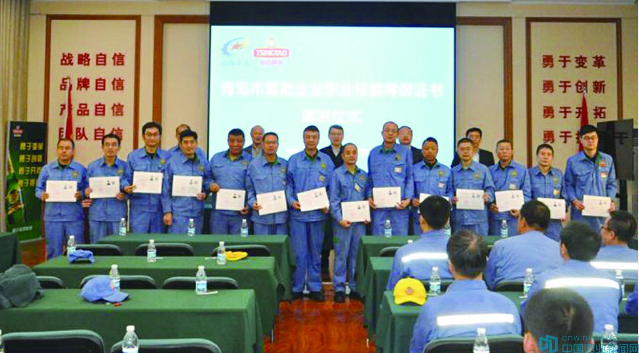 11月15日,青島市首批企業自主評價職業技能等級證書頒發儀式在青島啤酒廠舉行,作為山東省首批試點企業之一,青島啤酒49名金牌技能專家獲頒“高級技師”等級證書。
