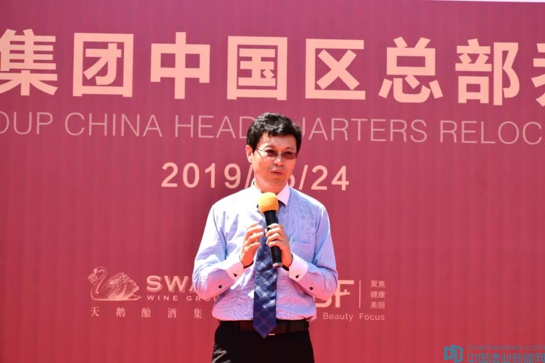 慶典儀式上,天鵝控股集團(tuán)董事長(zhǎng)李衛(wèi)首先致辭。他對(duì)蒞臨現(xiàn)場(chǎng)的嘉賓和在遠(yuǎn)方的朋友們表達(dá)了由衷的感謝。接著,他對(duì)天鵝集團(tuán)在中國(guó)市場(chǎng)的發(fā)展做了回顧,與大家分享了天鵝集團(tuán)走過(guò)的不平凡歷程和取得的驕人業(yè)績(jī)。李衛(wèi)感慨地說(shuō):”站在上海虹橋核心商務(wù)區(qū)新的辦公起點(diǎn),希望借助大虹橋樞紐飛機(jī)的翅膀、借助高鐵的軌道,讓天鵝集團(tuán)展翅高飛,越飛越高,成長(zhǎng)為中國(guó)進(jìn)口葡萄酒的標(biāo)桿企業(yè)。”