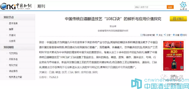 2019年1月,在酒類(lèi)行業(yè)權(quán)威期刊《釀酒》中刊登了一篇名為《中國(guó)傳統(tǒng)白酒釀造技藝“108口訣”的解析與應(yīng)用價(jià)值探究》的文章(文章見(jiàn)2019年《釀酒》01期),受到行業(yè)的熱論,在白酒技術(shù)圈內(nèi)傳開(kāi),這篇文章的作者正是張金修。更有行業(yè)知名媒體將口訣比喻為“釀酒秘籍”,將張金修稱(chēng)為“中國(guó)白酒技藝口訣秘籍編寫(xiě)第一人”。