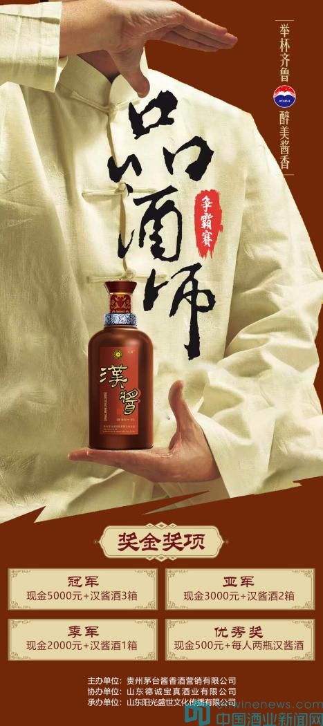 活動分為品酒師爭霸賽和品鑒晚宴兩大部分。下午我們將通過醬香酒知識問答和盲品兩種方式進行漢醬城市品酒師的比拼。我們將角逐出濟南站的冠、亞、季軍及20位優秀獎。獲獎者將獲得豐厚的獎金和獎品,并在晚宴部分進行隆重的頒獎盛典。