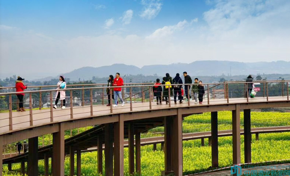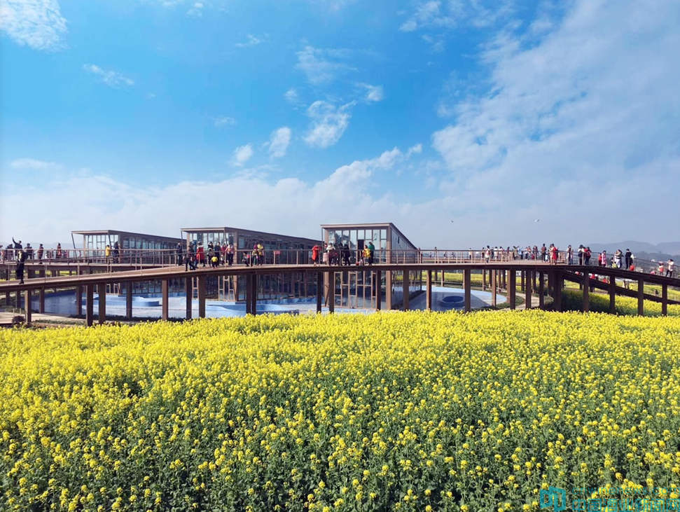 黃燦燦的油菜花競相綻放,只見望不到邊的黃色花海惹人沉醉,眾多游客或在花海棧道漫步賞景,或在爛漫的花海里拍照留影。油菜花花期為整個三月,游客可盡情游玩觀賞。