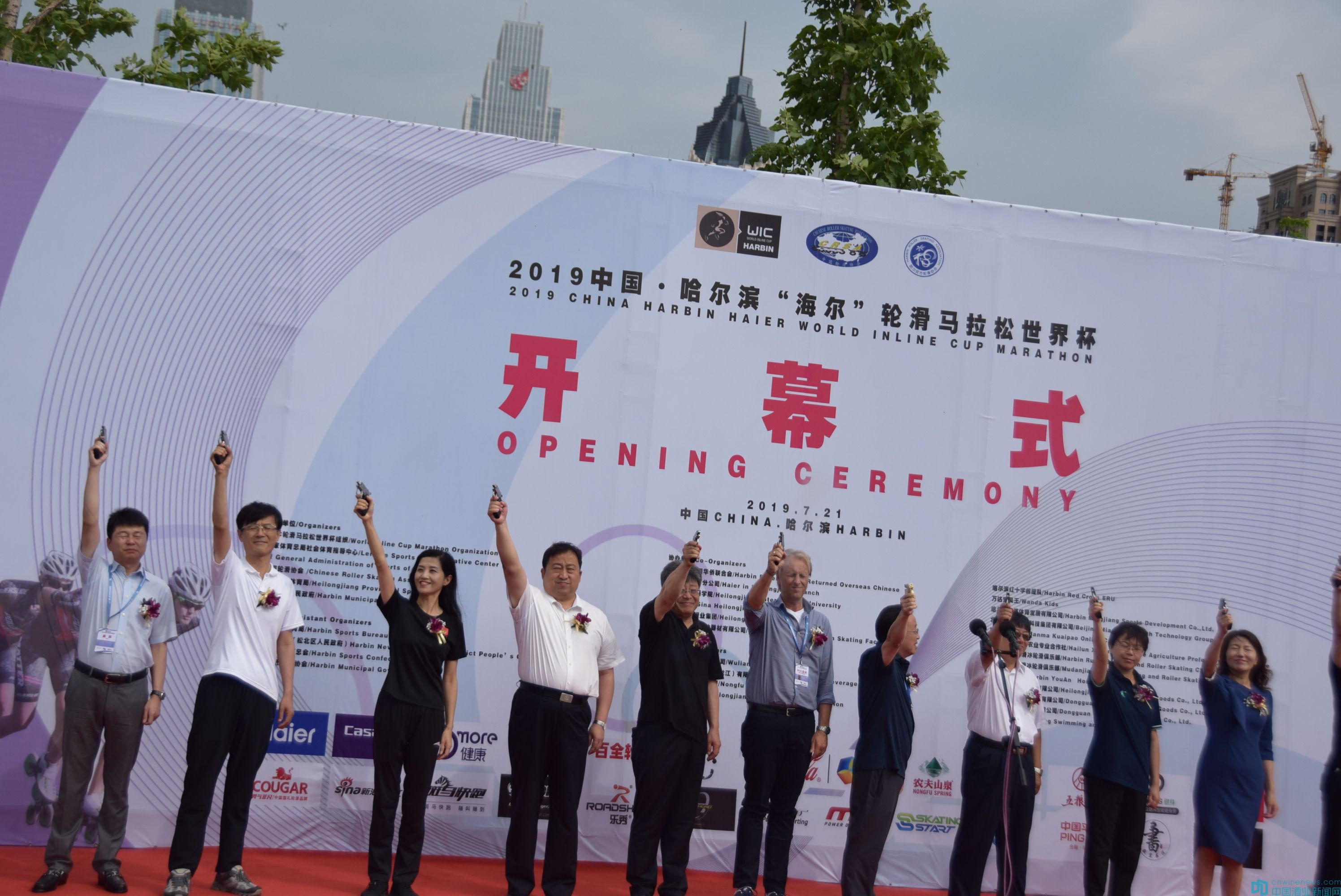 2019中國·哈爾濱輪滑馬拉松世界杯由世界杯單排輪滑馬拉松組織(簡稱WIC)、國家體育總局社會體育指導中心、中國輪滑協會、黑龍江省體育局、哈爾濱市人民政府共同主辦。黑龍江省副省長孫東生,黑龍江省政協副主席張顯友,哈爾濱市體育局黨組書記、局長趙竹帛,WIC組織主席P·斯丹斯瑅尼,WIC執行主席V·斯克里克庭,速度滑冰世界冠軍于靜等出席了開幕式。五糧液黑龍江聯誼會會長徐福順,五糧液黑吉蒙東營銷戰區副總經理張相木,五糧液黑吉蒙東營銷戰區黑龍江營銷基地總經理白歐分別代表五糧液為WIC職業輪滑個人(男)前三名頒發獎金,中國專業輪滑個人(男、女)前三名頒發獎牌及證書。