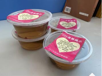 所有飯盒上貼上愛心卡,標注菜品制作人、分餐人、送餐人姓名及當日體溫。公司為所有用餐人員熬制“清肺排毒湯”,并配備二兩小酒。