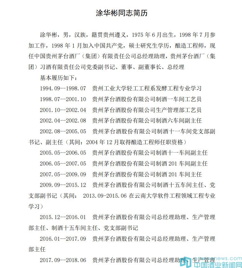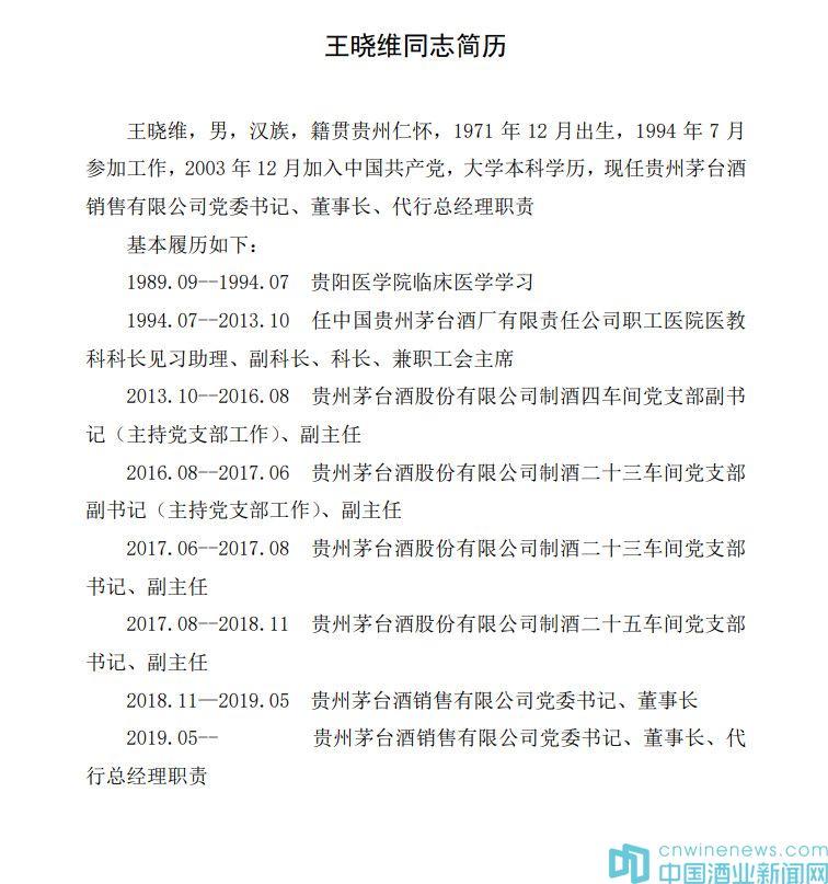 萬波同志已于2019年7月2日起,擔任茅臺集團黨委委員、副總經理。