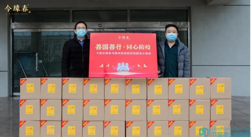 2月29日,在山東滕州新型冠狀肺炎疫情防控的關鍵時期,為踐行企業責任,傳遞善國精神,山東今緣春酒業利用自身產業優勢,積極開展抗擊疫情防控活動,分別向洪緒鎮、東沙河鎮,捐贈今緣春75度高度酒各30箱,助力當地疫情防控工作。其中洪緒鎮政府黨委副書記、鎮長劉百順,東沙河鎮政府辦主任秦召玉,今緣春酒業釀酒公司副總經理丁德亮,今緣春酒業銷售公司副總經理李永濤出席捐贈儀式。