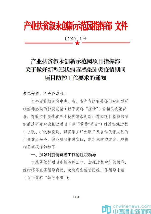 全國疫情防控即將迎來曙光,瀘州市政府等多部門相繼頒布企業復工復產指導文件,在疫情防控和復工復產交匯的關鍵期,產業扶貧敘永創新示范園智能釀造研發中試技改(小曲清香)項目指揮部全體成員,本著“責任向實處落,事情向細處做”的工作原則,堅持一手抓“硬防控”筑牢安全屏障,一手抓“軟服務”助推復工復產,確保疫情防控和生產發展“雙線雙贏”。