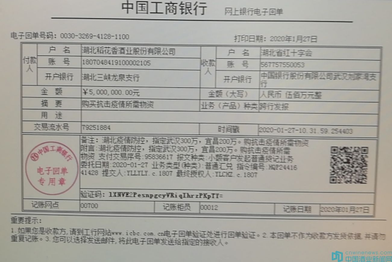 作為湖北最大的民營制造企業、鄂酒龍頭企業,稻花香集團不等不靠,超前反應、火線馳援,繼集團為抗擊疫情捐款500萬元后,集團黨員干部及員工又自發為抗擊疫情累計捐款50.28萬元,展現了企業黨員干部及員工的擔當和風采。