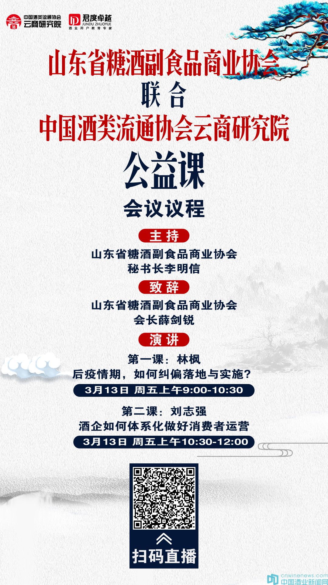 該課將于3月13日上午以網絡直播形式免費向廣大企業開放,請各企業組織公司高管、營銷人員積極參加。課程具體內容、時間安排、組織流程附后。另課程由山東省糖酒副食品商業協會會長薛劍銳致辭,秘書長李明信主持,北京君度卓越咨詢有限公司董事長林楓演講。